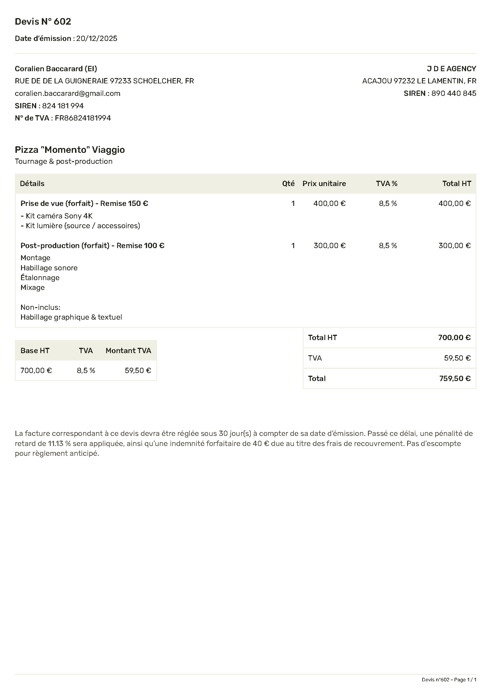 NB: Un acompte de 50% du devis est nécessaire pour valider et commencer le projet.